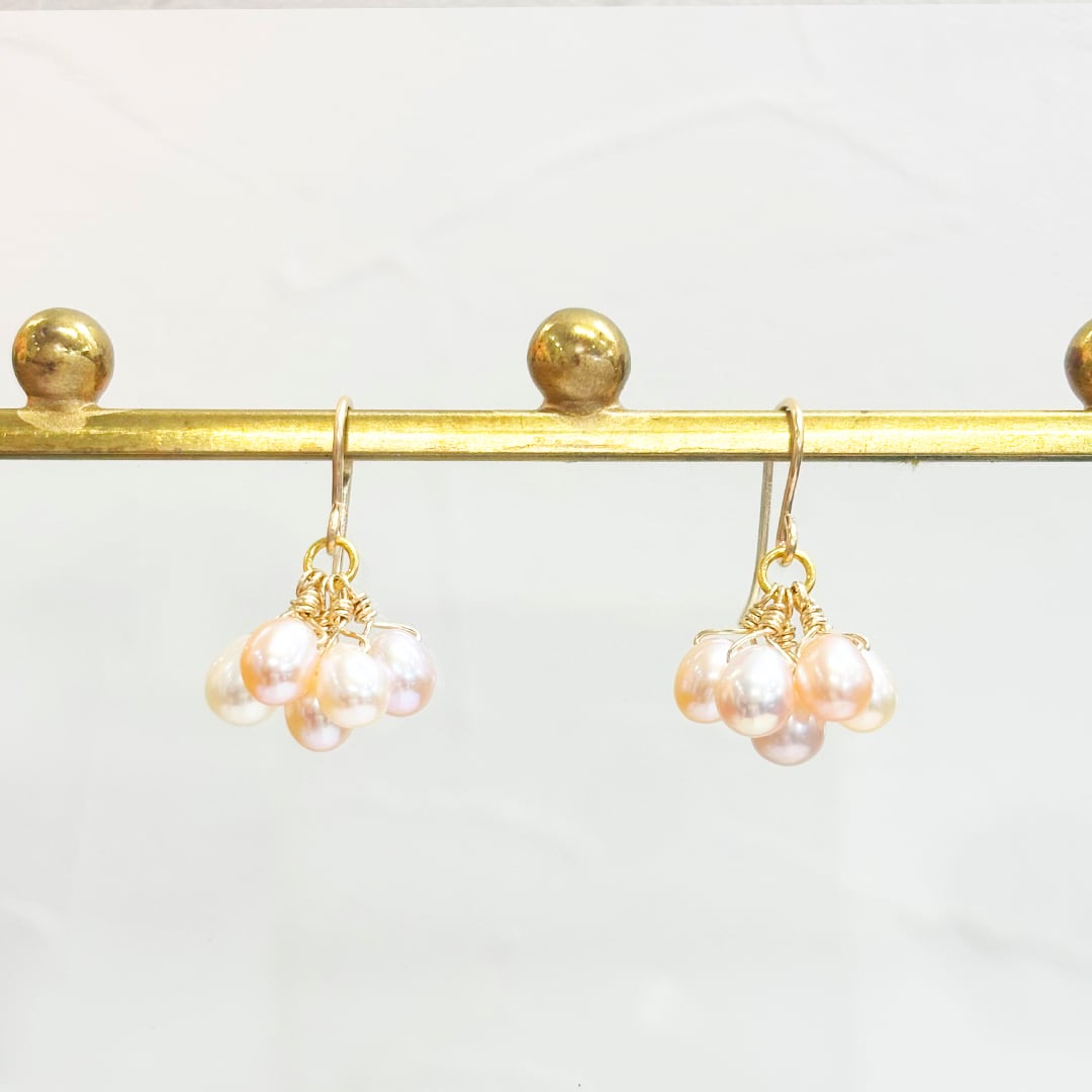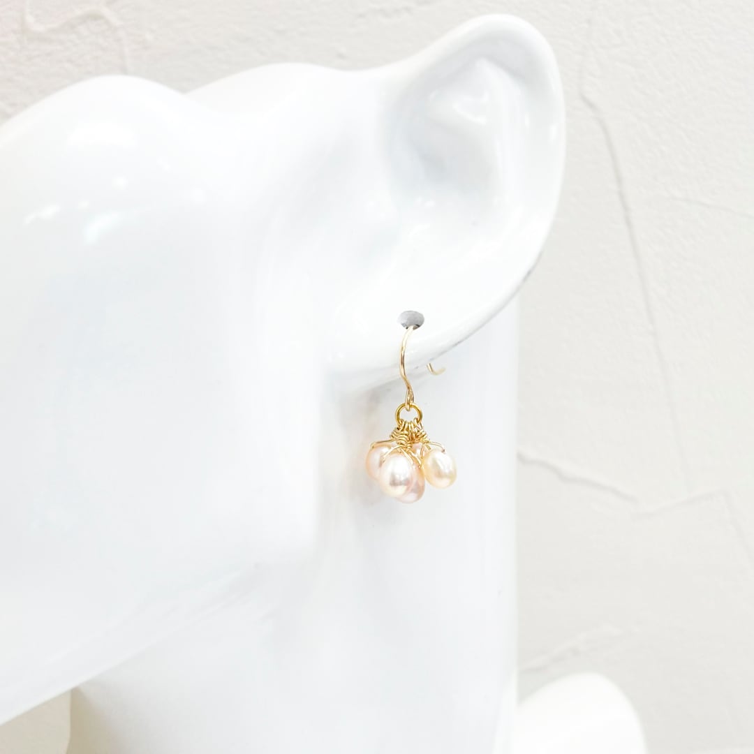 淡い色合いと繊細な光沢をもつ淡水真珠が、耳元でやさしく揺れ動きます。