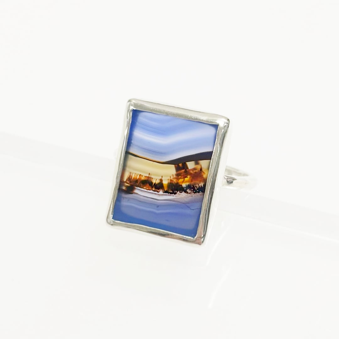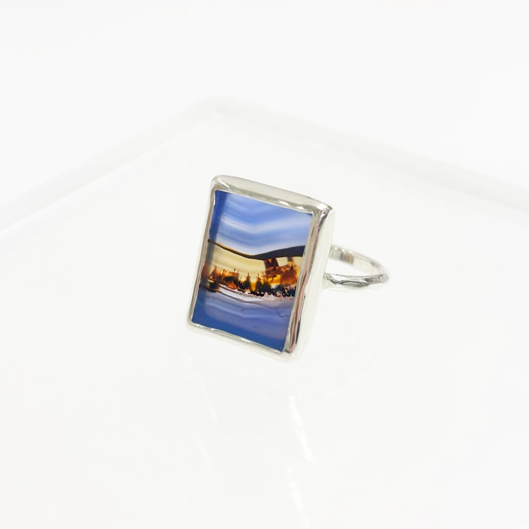 まるで大地の風景を切り取ったかのような模様が浮かぶ、ランドスケープアゲートのシルバーリング。