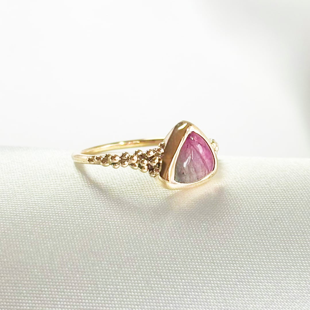 トルマリン バイカラー ウォーターメロン リング 指輪 プレゼント ギフト ハンドメイド アクセサリー ジュエリー ストーン 10KYG K10YG 10K K10 イエローゴールド ゴールド 宝石 母の日 空色 石 カラーストーン 十月 ご褒美 クリスマス 宇都宮