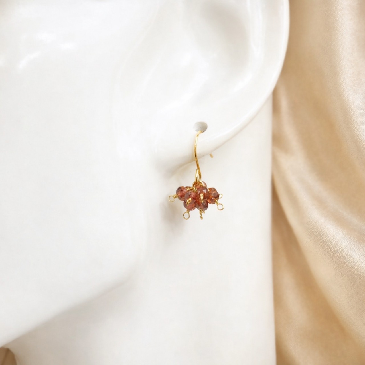小さなガーネットが耳元を華やかに彩ります。