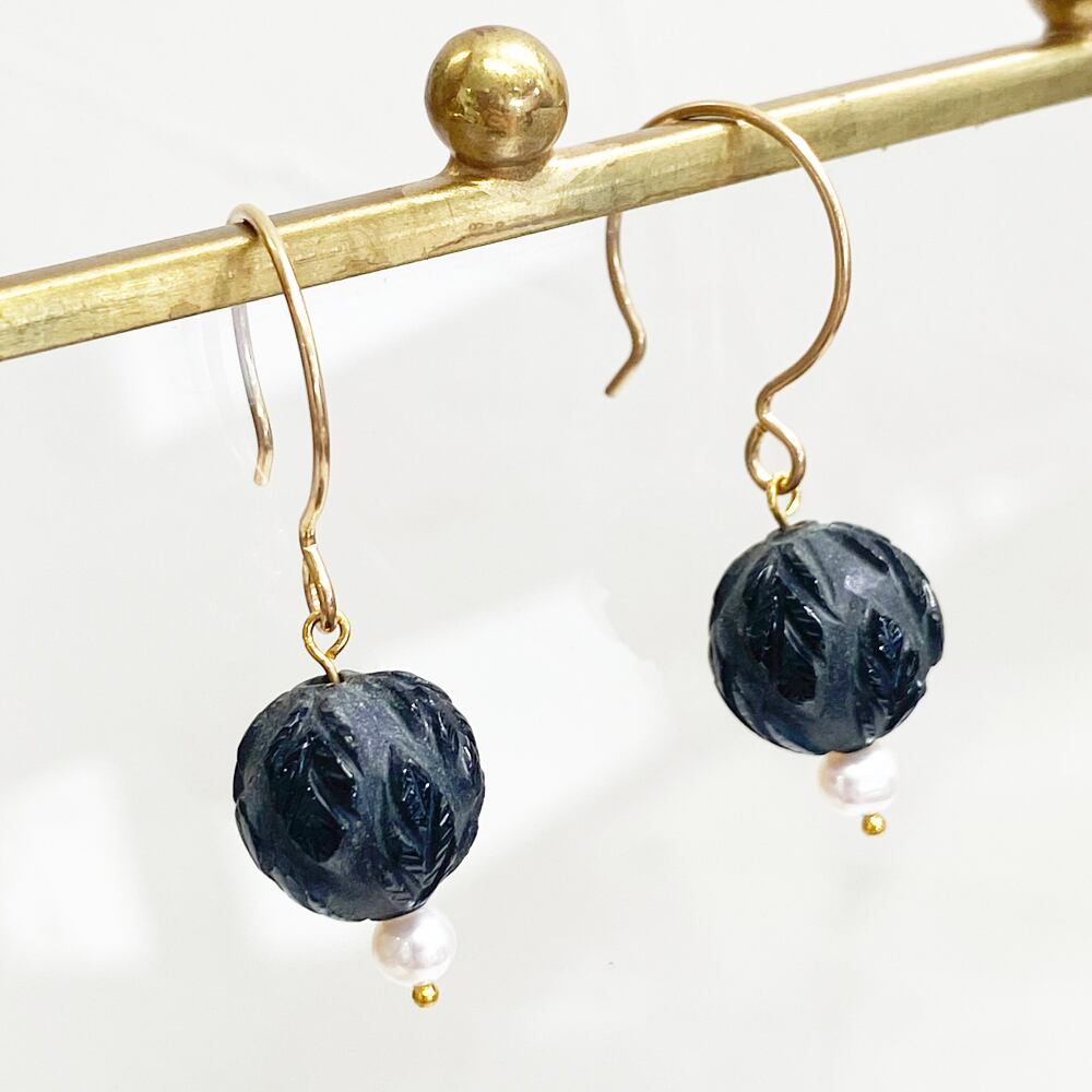 【イヤリング交換可能 ピアス】 ブラックカルセドニー 淡水真珠