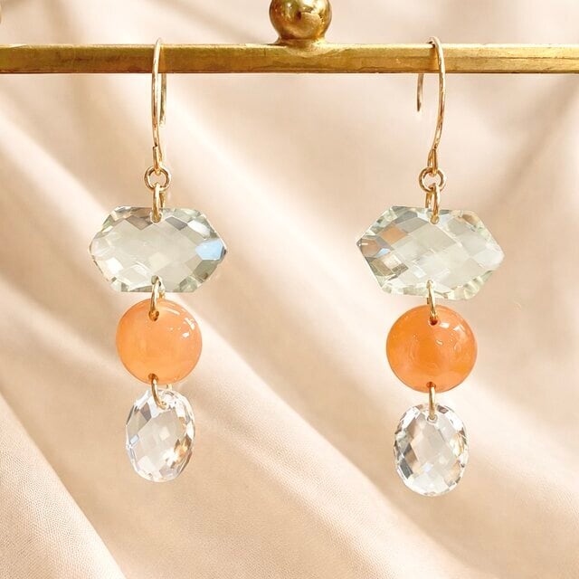 グリーンクォーツ ムーンストーン クォーツ ゴールド プレゼント ギフト ハンドメイド アクセサリー ジュエリー シンプル 14GF 14kgf K14 宝石 天然石 母の日 母の日プレゼント カラーストーン ご褒美 クリスマス 宇都宮